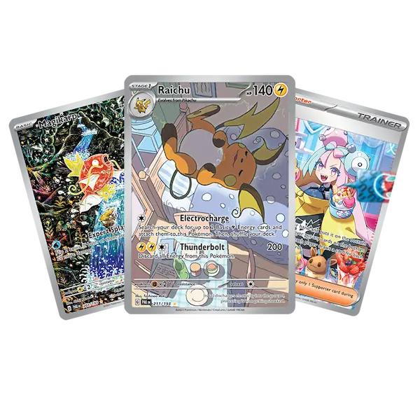 El conjunto Scarlet & Violet Paldea Evolved presenta muchas tarjetas de Pokémon lindas y acogedoras. Como: Raichu, Sprigatito, Wooper y Maushold.