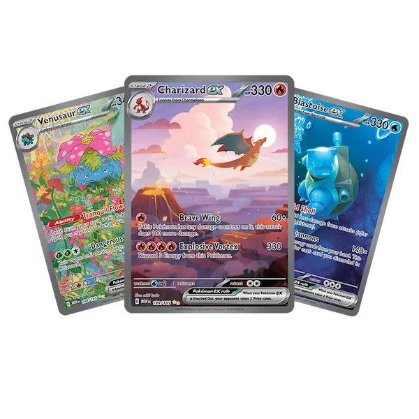 El conjunto de 151 se centra en los Pokemon de la región de Kanto. Que es conocida como la Generación 1. ¡Presenta las mejores cartas de ilustradores de Charizard, Blastoise, Venusaur y muchos más!