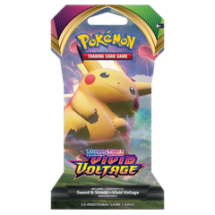 The Pokémon Vivid Voltage Sleeved Booster pack contains 10 cards of the fourth Sword & Shield Series Expansion.