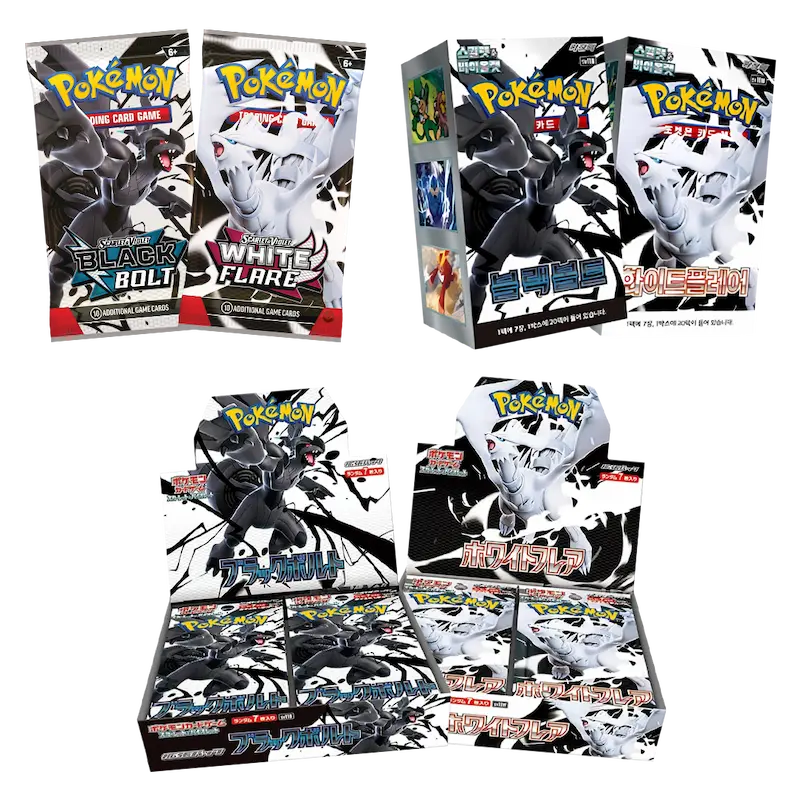 De Black Bolt & White Flare sets zijn verkrijgbaar in het Engels, Japans en Koreaans. Alle taalversies kunnen een God Pack bevatten.