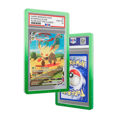 Slab guards are a TPU bumper that goes around the edge of a PSA slab. It fits tightly so it protects your graded card slab. And they look amazing too!