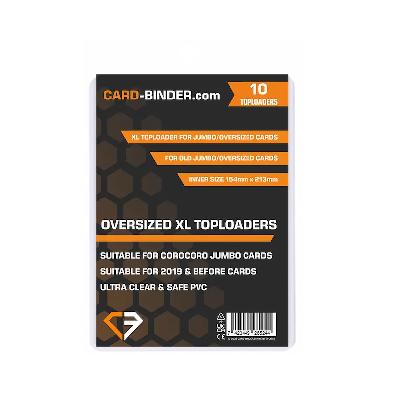 XL OVersized Toploaders are made for 2019 and before Jumbo Cards. They are also a great fit for the slightly bigger CoroCoro Magazine Jumbo cards.