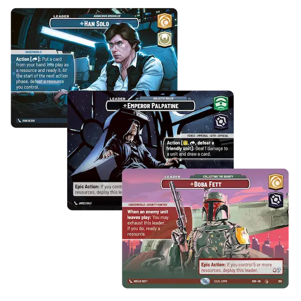 The Star Wars: Unlimited TCG features characters of the Star Wars Universum. From the early movies up until recent spin-offs like the Mandalorian.